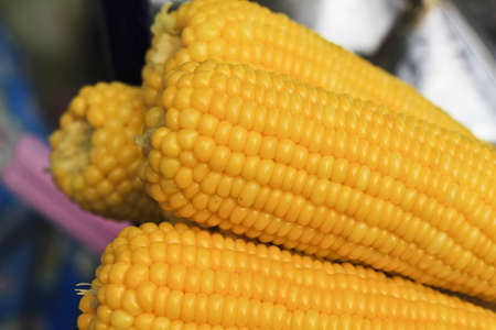 Boiled yellow corn for sale in market