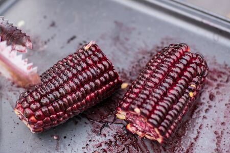 Close-up view of the purple corn.