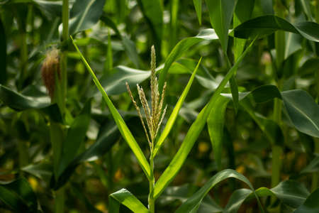 corn field on crop plant for harvesting.