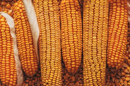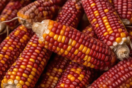 Grains of ripe corn. Colorful ripe raw corn ears, autumn harvest, AI Generated