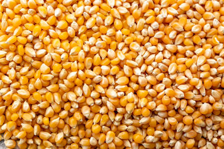 Raw Corn Seeds or Corn kernels are the fruits of corn. Grains of ripe corn. Kernels and seeds of maize.