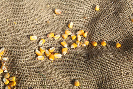 Old rancid yellow orange corn kernels left over from last autumn
