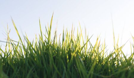 Grass background texture. Grass pattern for banner. Outdoor grass environment. Garden grass background. Fresh grassy field.