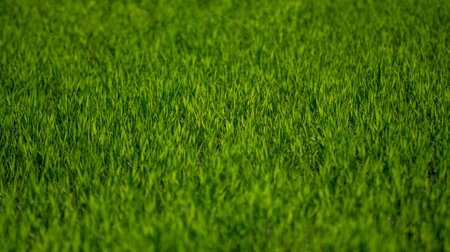 Top view of lush green grass creating vibrant and dense texture perfect for nature and landscape themes.