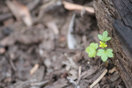Small yellow wild flowers grow in summer garden with beautifull soft bokeh