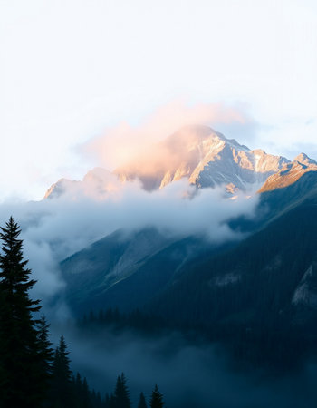 Mountain landscape with clouds and fog in Banff National Park, Alberta, Canada