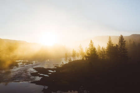 Mountain landscape with fog in the morning. Composition of nature.