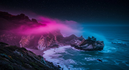 Beautiful night view of the Pacific Ocean, Big Sur, California, USA