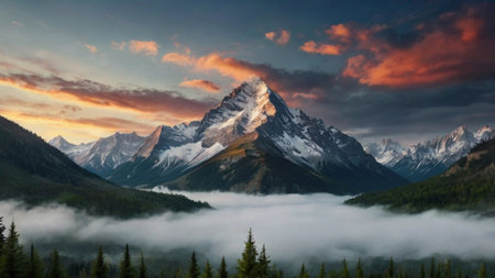 Beautiful view of the mountain at sunrise.
