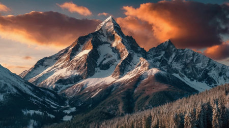 Snow Mountain Forest and Sky Landscape