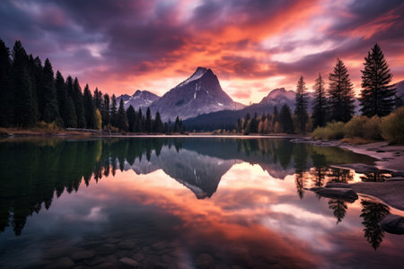 Mountain lake with reflection in Banff National Park, Alberta, Canada