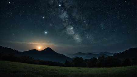 Milky way over the mountains at night with stars in the sky