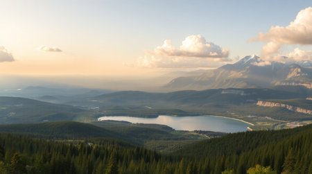 An AI generated illustration of majestic mountains revealing the majestic calm crisp beauty of nature