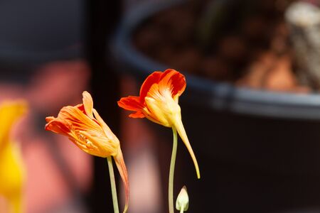Garden nasturtium yellow and orange flowers - Latin name - Tropaeolum majus