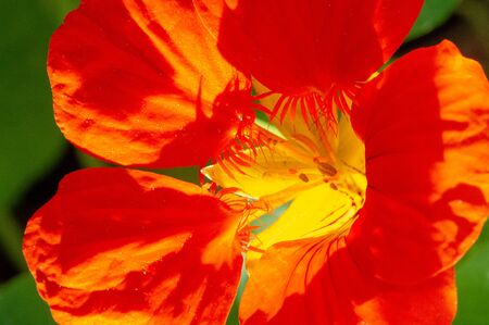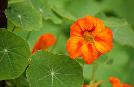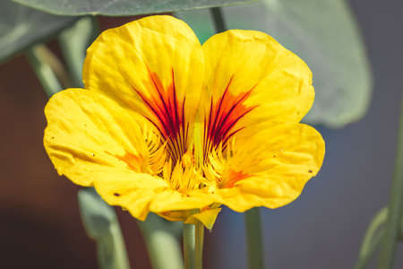 Closeup of tropaeolum majus also known as the garden nasturtium, nasturtium, Indian cress or monk´s cress, is a species of flowering plant in the family Tropaeolaceae.