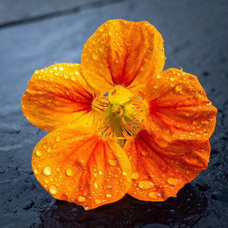 Vibrant orange edible flowers on a dark background Nasturtium, or Capuchin