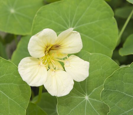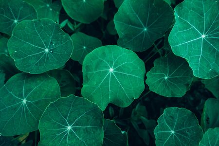 Green young leaves of Nasturtium (Tropaeolum) plant.