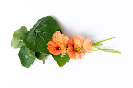 Orange garden nasturtium flowers (Tropaeolum majus), closeup