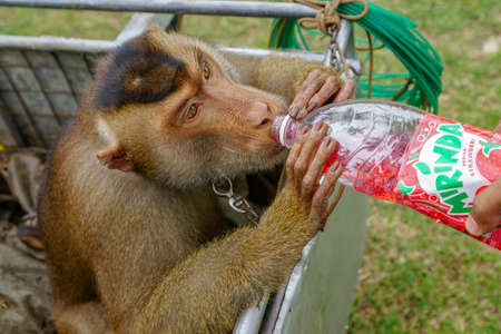 A beautiful shot of a monkey in a park in Phuket, Thailand