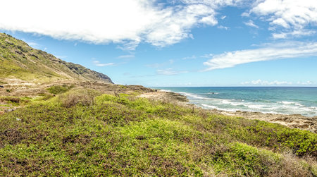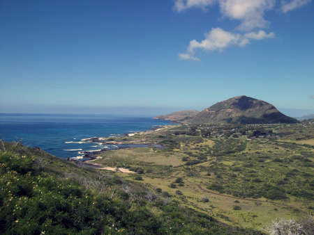 Scenic east Oahu vista along the Makapuu Point trail in early morning, Hawaii