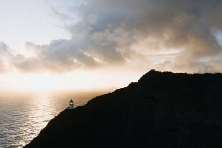 Old lighthouse on the cliff side on Makapu'u point on Oahu in Hawaii
