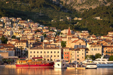 Makarska, Croatia - May 29, 2017: View of Makarska at dusk, Croatia
