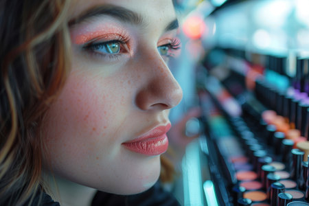 Close-Up Portrait of a Woman Looking at Makeup in a Store
