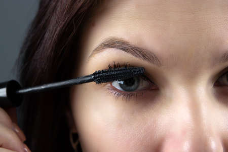 beautiful girl paints eyes with mascara close-up. cosmetics, personal care.