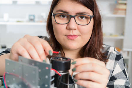 Young engineer in the lab adjusting a 3D printers components