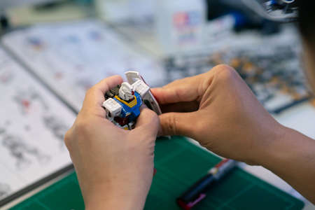 BANGKOK, THAILAND - June 15, 2020: Asianman building Plastic model RX-78-2 GUNDAM Real grade scale 1:144