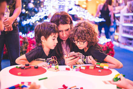 Kuala Lumpur, Malaysia – December, 2019: Children play with Lego blocks at Pavilion Shopping Mall in Bukit Bintang.