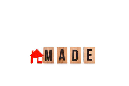 Home Made - block letters with red home / house icon with white background