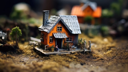 photo of miniature scene small model little house at outer space world, generative AI