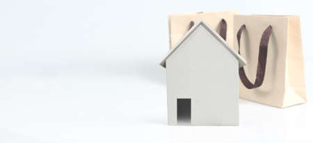 White home model made from ceramic. Bank loan for build house concept