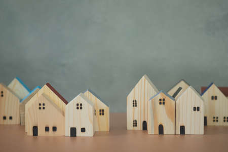 Many miniature houses made of wooden. Managing property investment concept