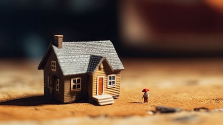 Small house as an affordable housing real estate concept. Sale and purchase of houses outside the city, suburbs. Renting a house in real estate companies. real estate insurance. Generative AI