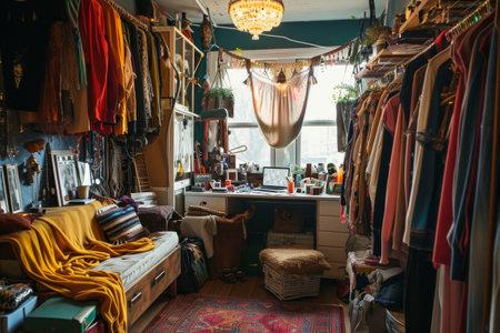 A fashion obsessed teenager's room filled with chic outfits and accessories Ai generated