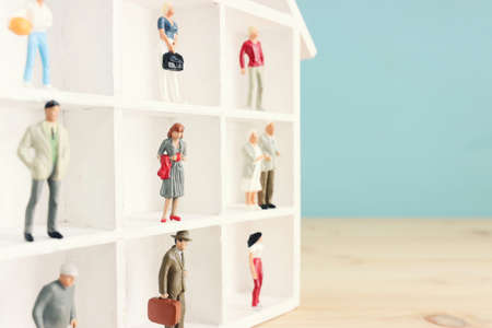 Various miniature people standing side by side. society or family concept