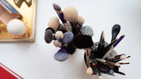 A set of brushes for makeup. workplace make-up artist. Brushes painter.