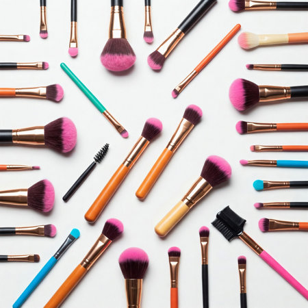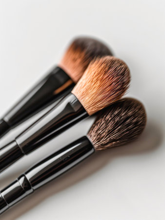 A stunning collection of makeup brushes showcasing various shapes and styles against a neutral backdrop. Perfect for beauty enthusiasts and professionals alike.