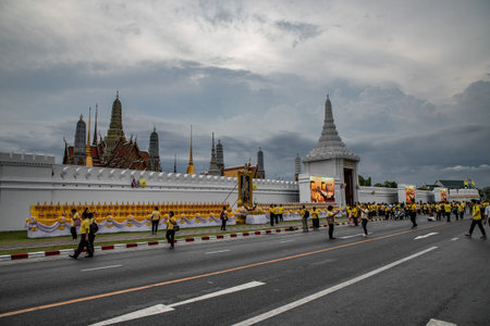 BANGKOK, THAILAND - OCT 22, 2016: Thai people attends to singing the anthem for King Bhumibol around The Grand Palce to pay respect on October 22, 2016 Bangkok,Thailand.