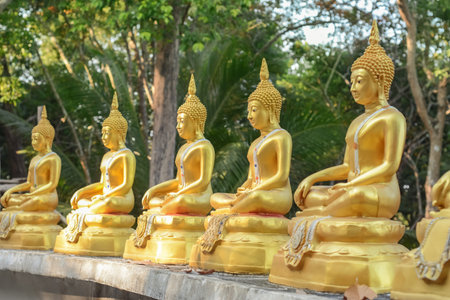 Buddha differences image act of golden Buddha with the main Buddha statue outdoor Thailand