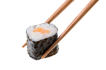 Sushi roll isolated on white background. Sushi roll with salmon, nori and cucumber