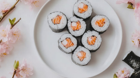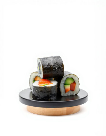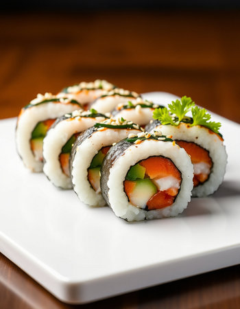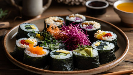 Fresh seafood plate with maki sushi variation generated by artificial intelligence