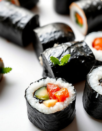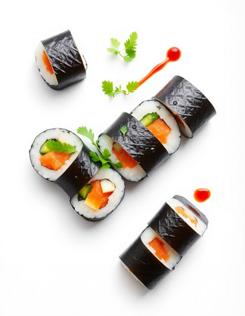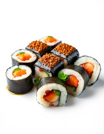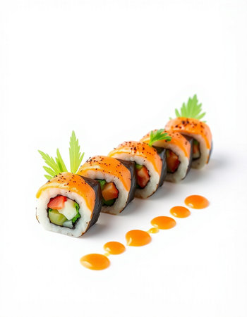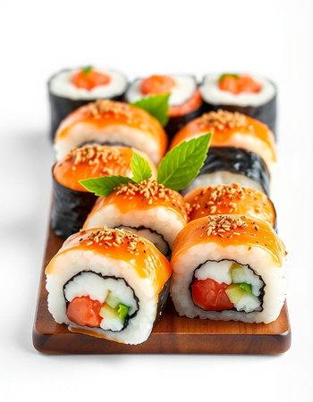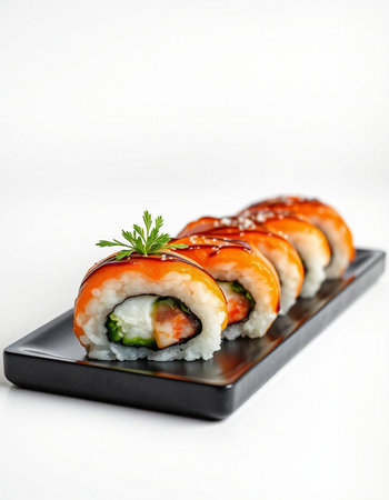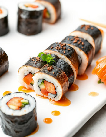 AI Generated. Grilled Sushi Rolls Topped With Green Onions