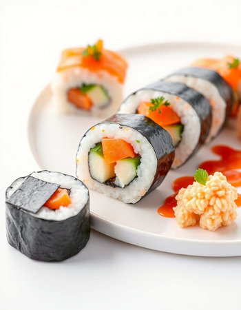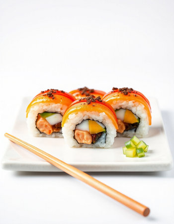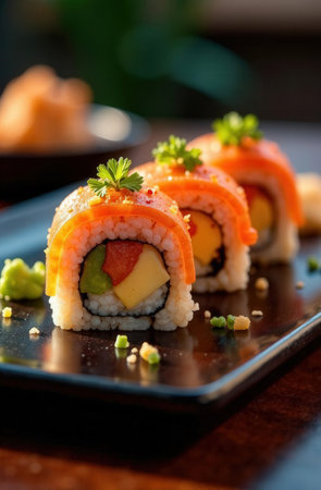 Freshly-Made Sushi Rolls with Vibrant Colors, Perfect for Food Blogs and Culinary Articles