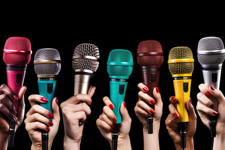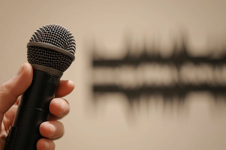 Hand holding a professional microphone, ready for an interview or recording. Ai generated image