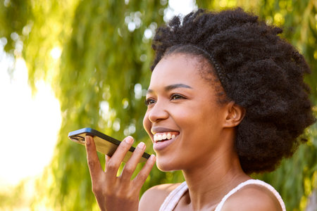Young Woman Using Voice Recognition Function On Mobile Phone