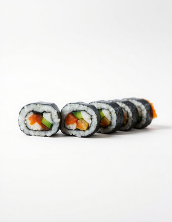 Sushi rolls isolated on white background. Japanese food restaurant delivery.