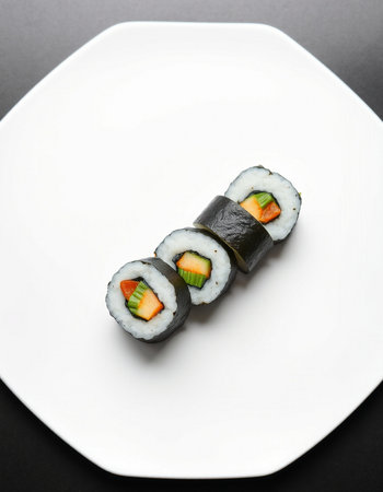 platter of colorful and freshly made vegan sushi rolls, created with generative ai